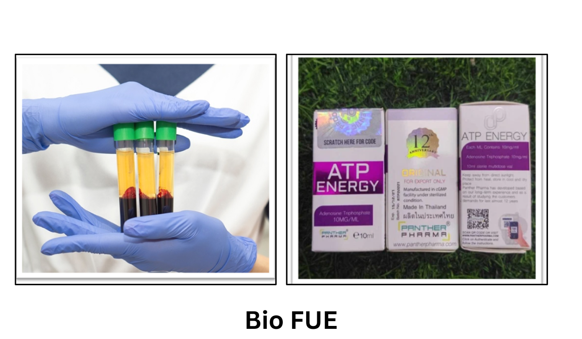 The Bio-FUE hair Transplant technique combines traditional Follicular Unit Extraction (FUE) with Platelet-Rich Plasma (PRP) therapy or ATP Solution. After extracting and transplanting hair follicles, PRP is applied to the scalp to stimulate healing and improve hair growth. This method enhances graft survival,accelerates recovery, and promotes denser, natural-looking hair.